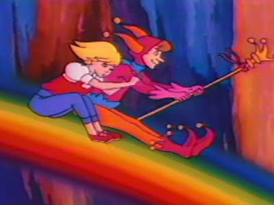 Esta Alicia, por su parte, es una de las heroínas más blandas que he visto en una adaptación de Carroll. Desde el principio al final, le dicen en todo momento lo que ha de hacer y hacia dónde ha de ir, ahorrándole la reflexión, la búsqueda de soluciones y la toma de decisiones que implica cualquier viaje de exploración y descubrimiento - la base de una película infantil de aventuras - se parezca o no al libro en el que se inspire. Los únicos momentos en que toma la iniciativa son en el castillo de la Reina Blanca, donde usa la adulación para ganarse su favor, y en el desfiladero, en que el Caballero Blanco se acobarda y debe quitarle la espada y ahuyentar por sí misma a las harpías. En el resto, hace lo que le dicen, va a donde le indican, y siempre encuentra a alguien que la protege y la acompaña. Desde que Tom Fool vuelve para rescatarla, todo va rodado porque el bufón soluciona cualquier problema con sus poderes, hasta el punto en que Alicia le grita en un par de ocasiones "¡Usa tu magia!", cuando él ya ha dicho antes que se ha agotado. Al principio, debido a su aparente interés por viajar a diferentes países, y al entusiasmo con que corretea por el Mundo del Espejo, pensamos que va a ser una Alicia resuelta y dinámica, pero resulta más insípida que el agua de hervir los macarrones.